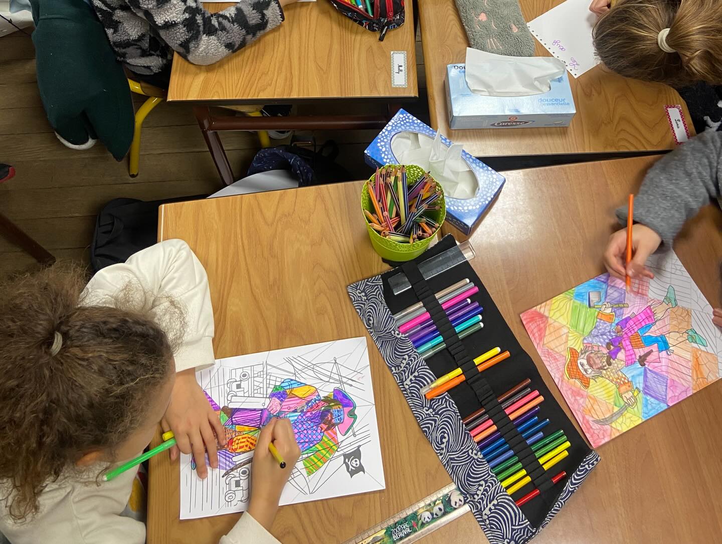 🤫Les CM1 et CM2, concentrés sur leurs exposés et arts visuels pour la classe de mer!