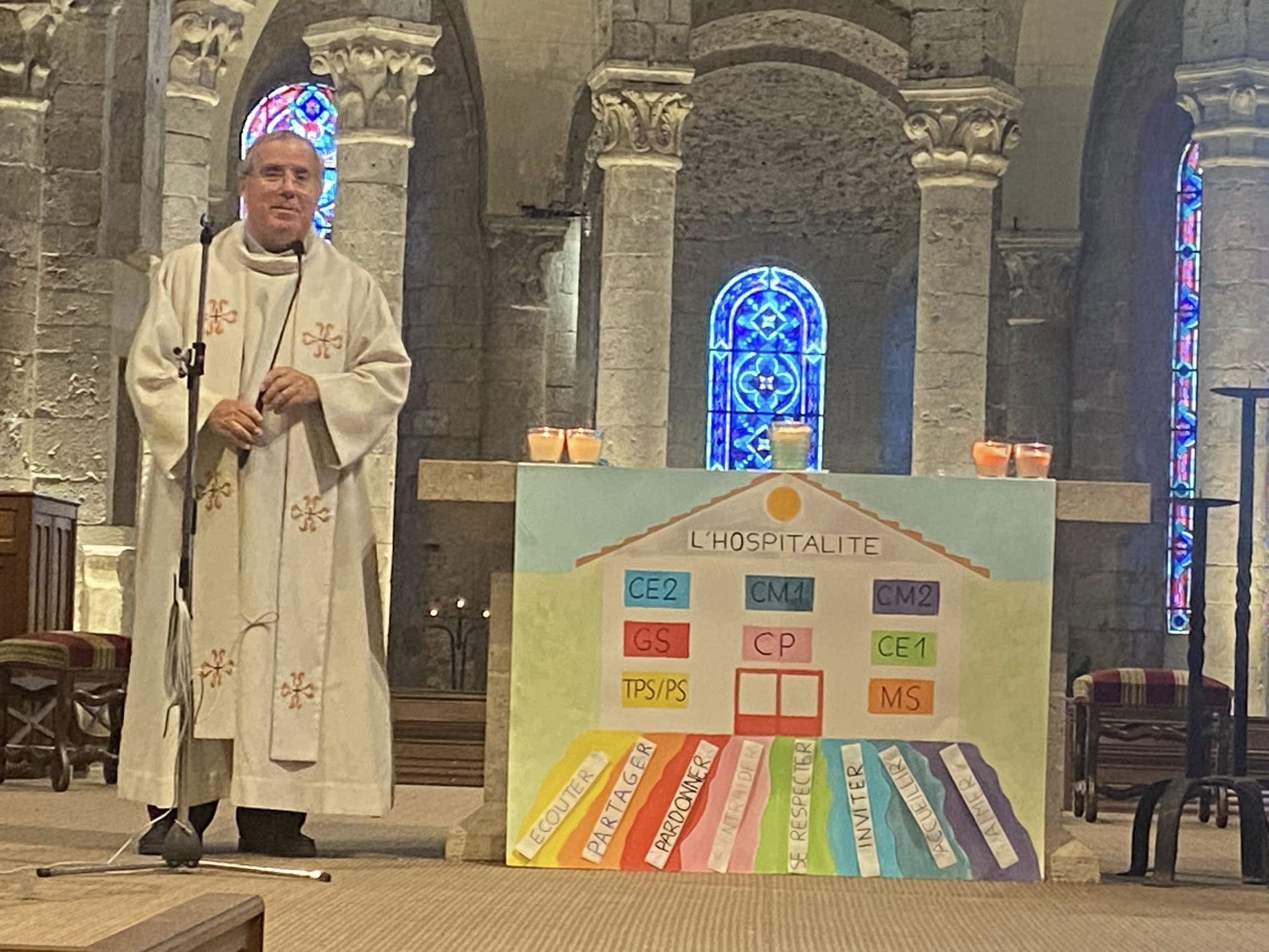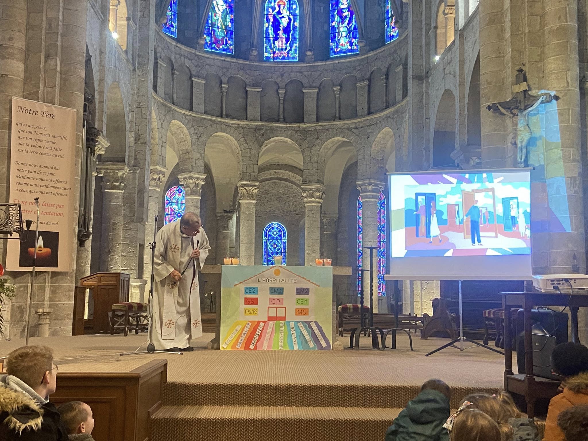 Aujourd’hui l’école était rassemblée à l’Abbatiale pour sa célébration de rentrée sur la thématique de l’année : l’hospitalité.