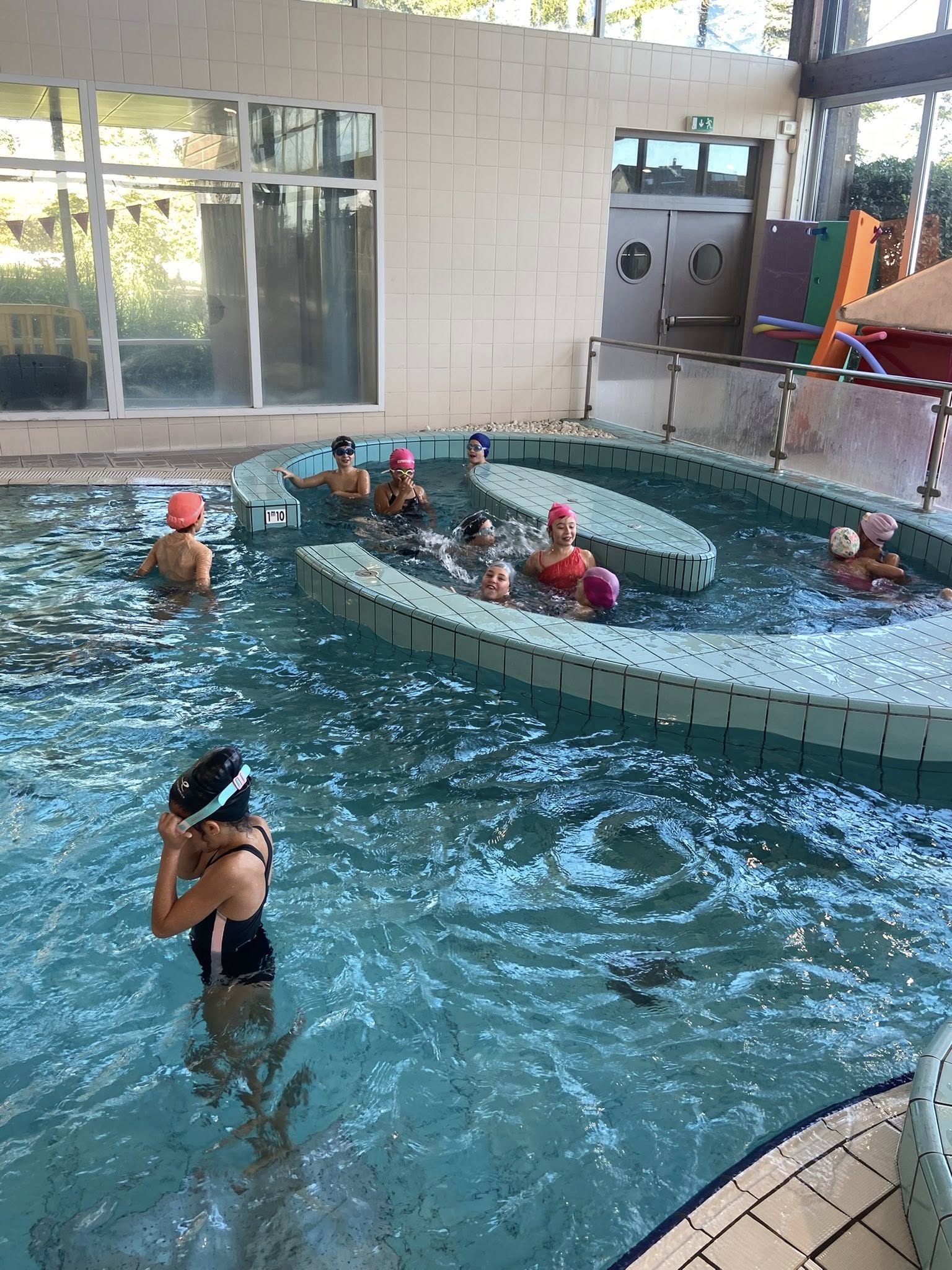 Début des tests de natation pour certains CM1/ CM2, d’autres profitent du côté ludique en attendant leur tour! Objectif pour tous: aisance aquatique pour la classe de mer en mai 2026!