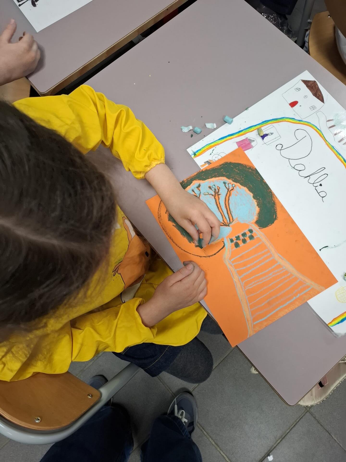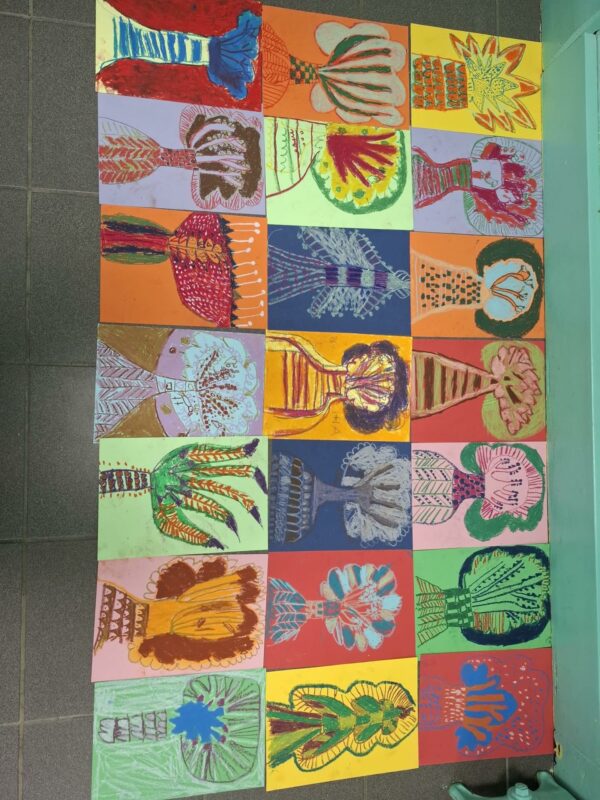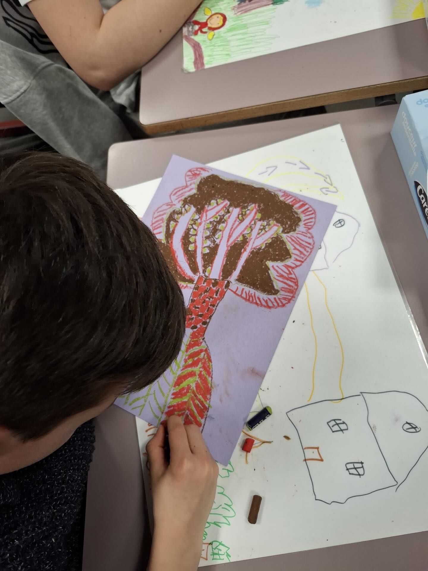 Jeudi, les élèves de CE1 ont eu la chance d’accueillir, Aurelia Fronty. Après un temps d’échange sur son parcours et son métier, ils devaient reproduire l’arbre de leur choix sur une feuille colorée avec 3 pastels à l’huile choisis spécifiquement. Nous la remercions pour cet après-midi artistique.