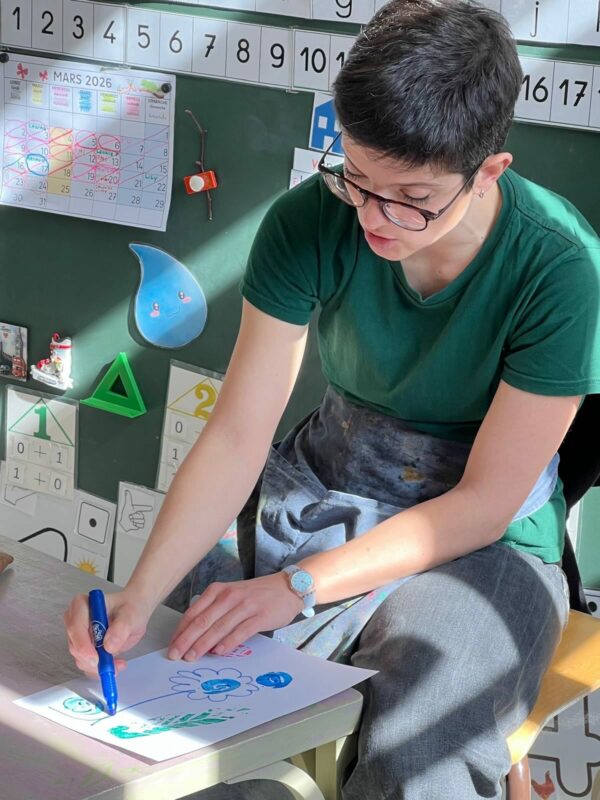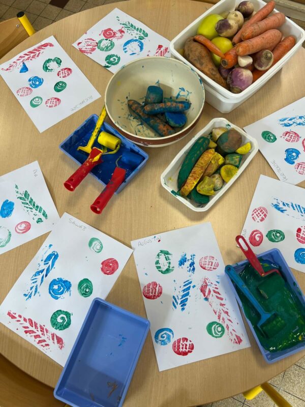 Marine Rivoal, auteure-illustratrice, est venue en MS, mardi 24 mars pour nous présenter son travail de gravure sur bois… À l ´aide de gouges, elle a gravé différents graphismes sur des légumes lesquels recouverts de peinture ont servi de tampons. Chaque enfant s’ est ensuite amusé à réaliser son propre petit chef d’œuvre !!