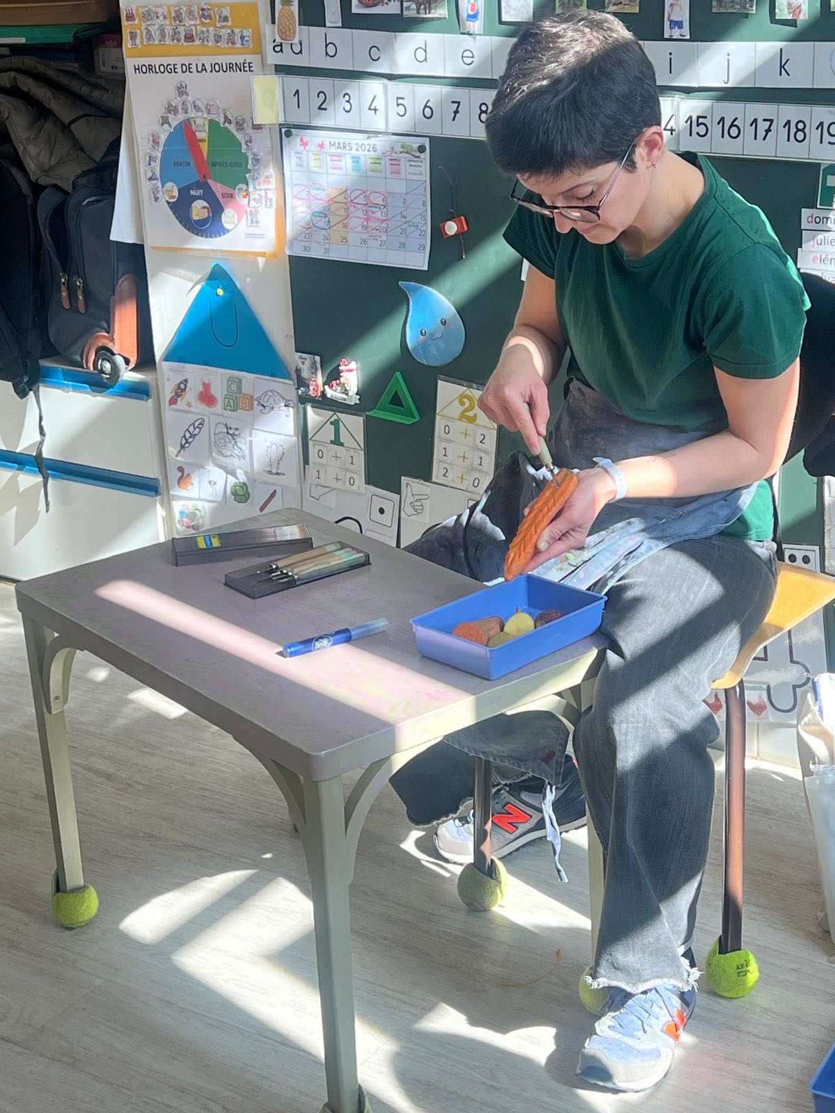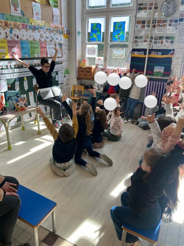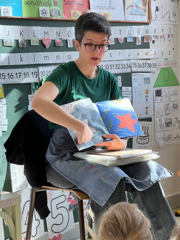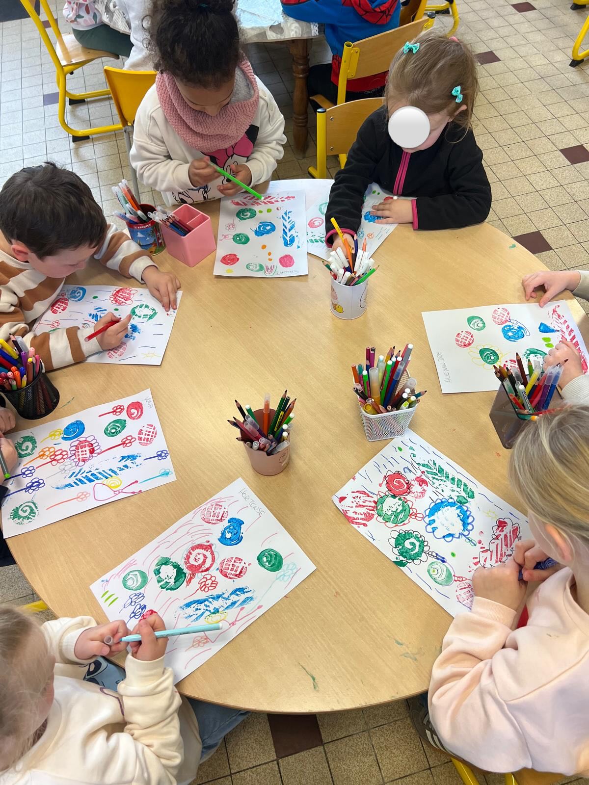 Marine Rivoal, auteure-illustratrice, est venue en MS, mardi 24 mars pour nous présenter son travail de gravure sur bois… À l ´aide de gouges, elle a gravé différents graphismes sur des légumes lesquels recouverts de peinture ont servi de tampons. Chaque enfant s’ est ensuite amusé à réaliser son propre petit chef d’œuvre !!